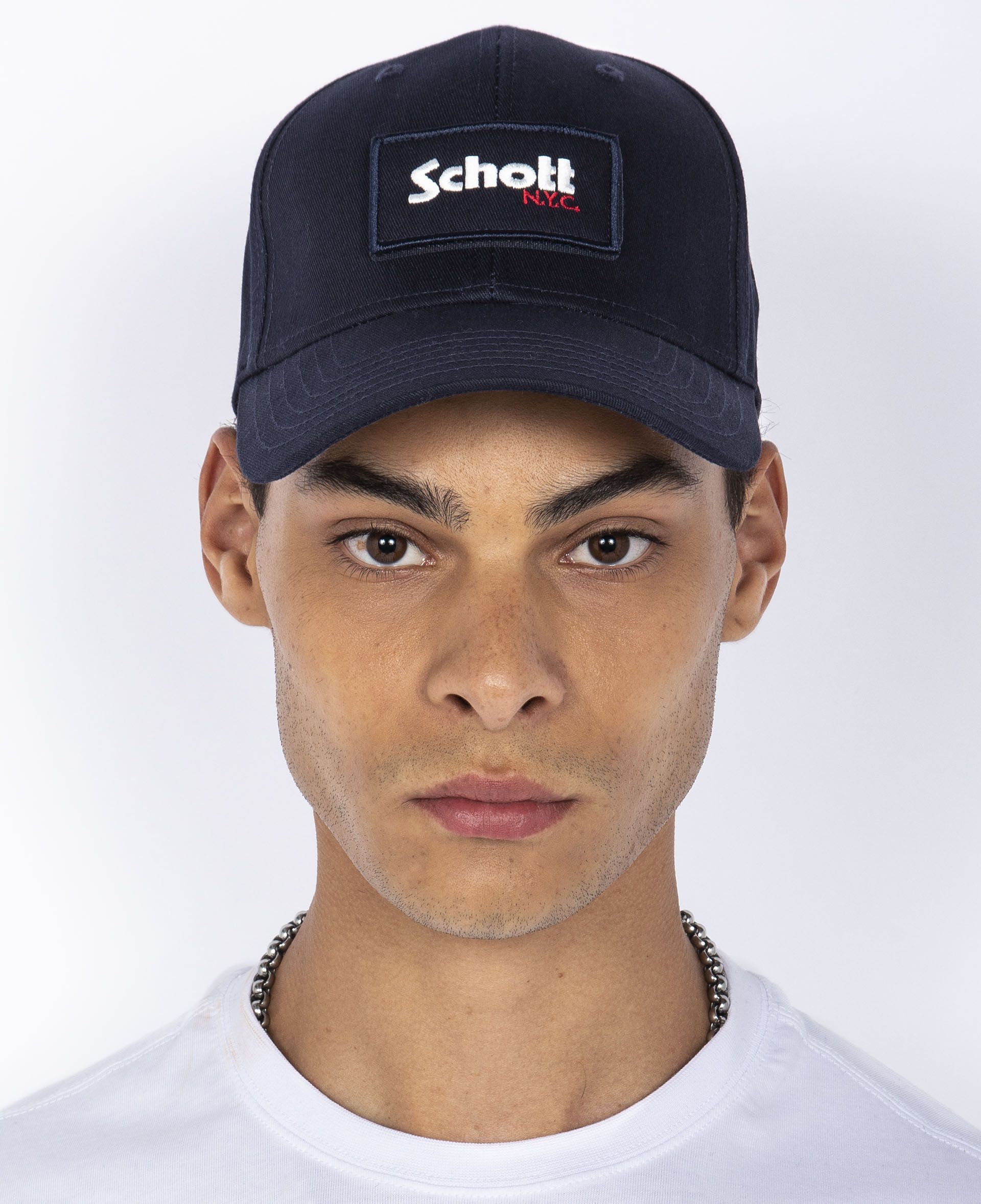 Cap Schott NYC Army CWU lippalakki, Schott NYC lippis, materiaali 100% puuvillaa, säädettävä, edessä logo tarranauhalla, väri navy/tummansininen, unisex malli, sopii miehille ja naisille.