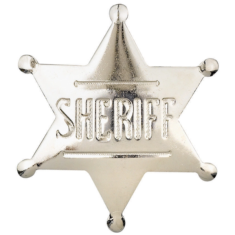 Sheriffin rintamerkki Sheriff Badge, hopeanvärinen sheriffin rintamerkki. Materiaali sinkkiseos, nikkelipinta. Mitat 2 3/4″/noin 6 cm. Kiinnitetään hakaneulalla. Mainio lahjaidea pienelle tai isommalle sheriffille!