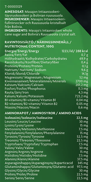 Katso annosteluohje, ainesosat ja ravintosisältö ohessa olevista kuvista.