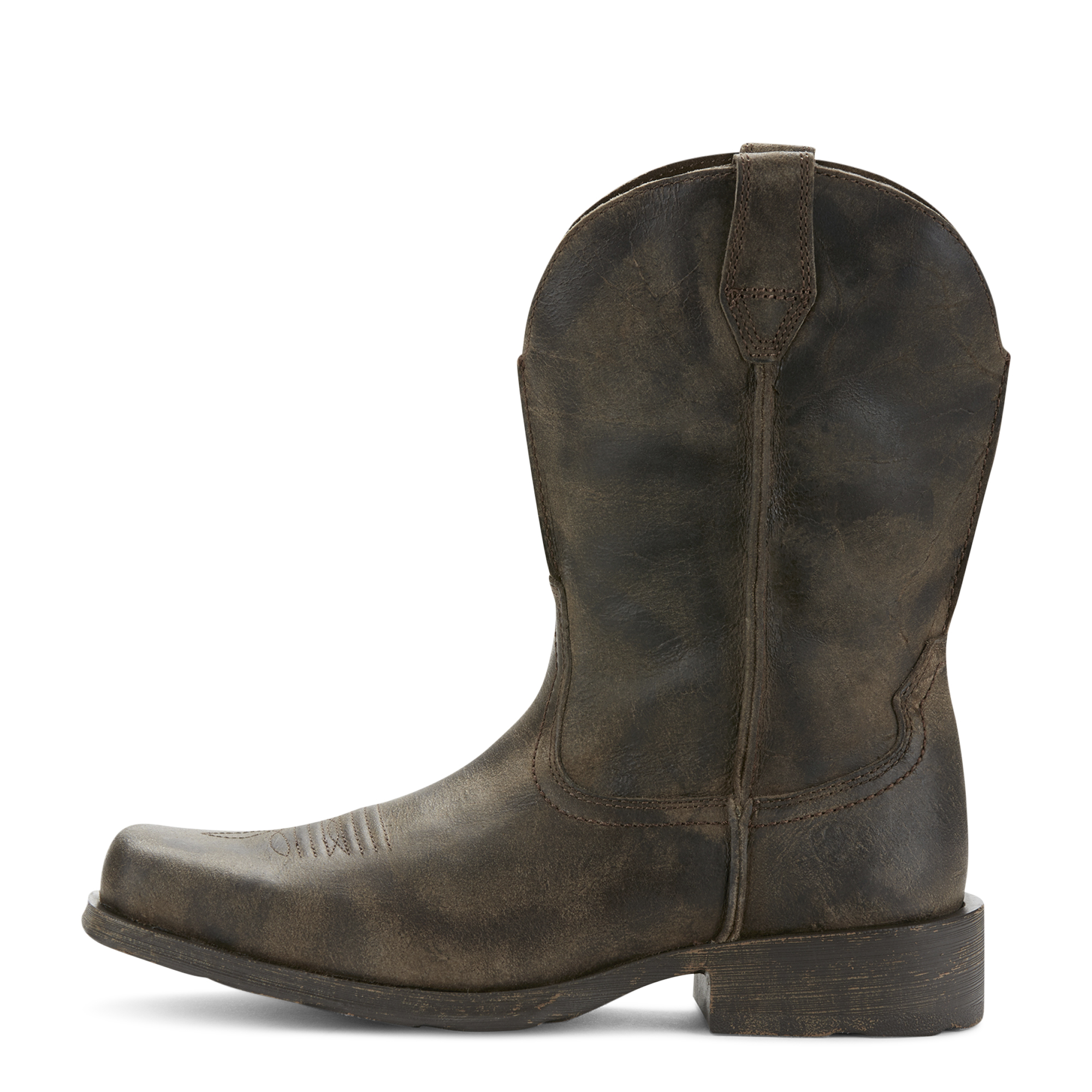 Ariat Men’s Rambler, Antiqued Grey, miesten Ariat Western Fashion bootsit nahkaa, vuorettomat, bootsin kärki tylppä, varren korkeus 11″/noin 28 cm, kannan korkeus 1,625″/noin 4 cm, leveys normaali/width D Medium, väri Antiqued Grey/antiikinruskea, hiukan valmiiksi kuluneen näköiset. Ramblerit ovat mukavat kuin lenkkarit ja joustava, kestävä ulkopohja lisää mukavuutta. Ramblerit ovat yhtä lailla kotonaan niin maatilalla kuin Vegasissa! Ikoniset Rambler bootsit ovat todellakin ihan parhaat cowboy-bootsit!