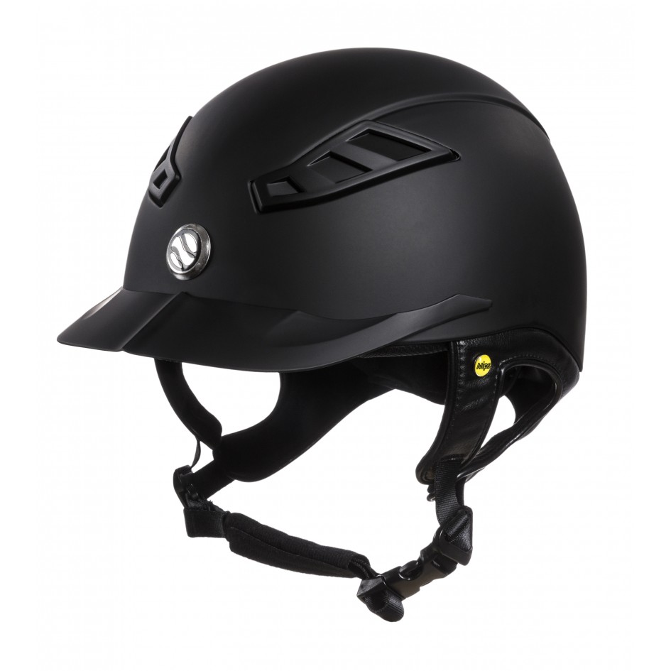 Ratsastuskypärä Back on Track EQ3 Lynx sileä, musta, VG1 ratsastuskypärä MIPS-järjestelmällä, joka imitoi ihmisen pään omaa turvajärjestelmää. Kun päähän kohdistuu vino isku, aivot voivat liikkua aivo-selkäydinnesteessä, joka vaimentaa aivoihin kohdistuvia voimia. Kypärä perustuu MIPS-teknologiaan, pienikitkaiseen integroituun kerrokseen, joka voi tietyissä tapauksissa absorboida osan energiasta, joka voisi muuten aiheuttaa aivovaurion.