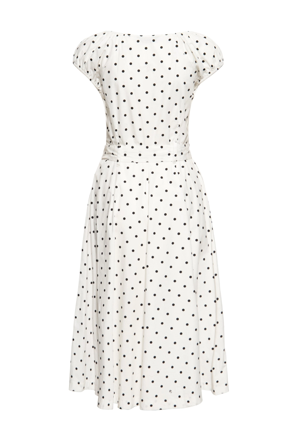 Retromekko Queen Kerosin Swing Dress Organic Cotton, unelmien pilkullinen swing mekko! Vyötärön korkeudelta lähtien laskeutuva, kaartuva A-linjainen, tyypillinen midi-pituinen mekko, joka korostaa hurmaavaa swing-henkeä. Mekossa on säädettävä, irrotettava vyö, joka voidaan solmia rusetiksi. Materiaali 100% luomupuuvillaa, kapea istuvuus, 30°C hienopesu. Pilkullinen retromekko on ehdoton klassikko!