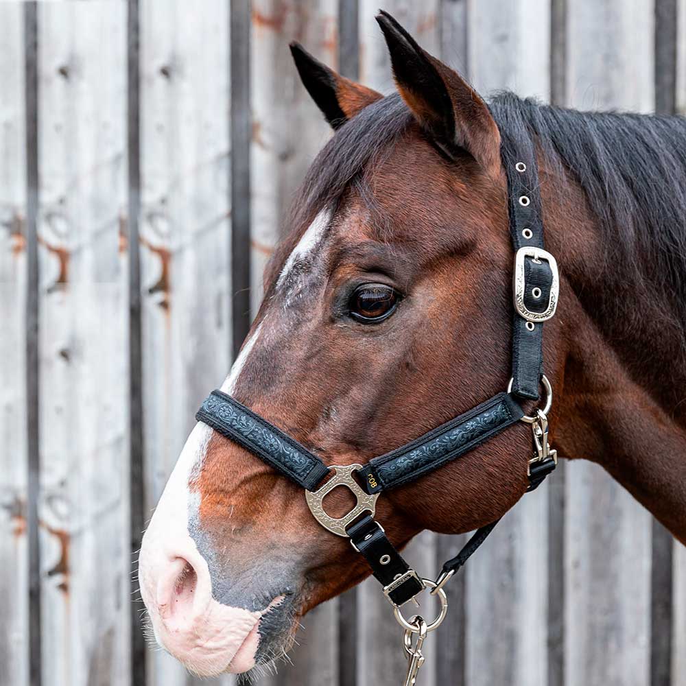 Halter Montana is padded with fleece and floral print on the halter and the buckles, delivered with lead rope.