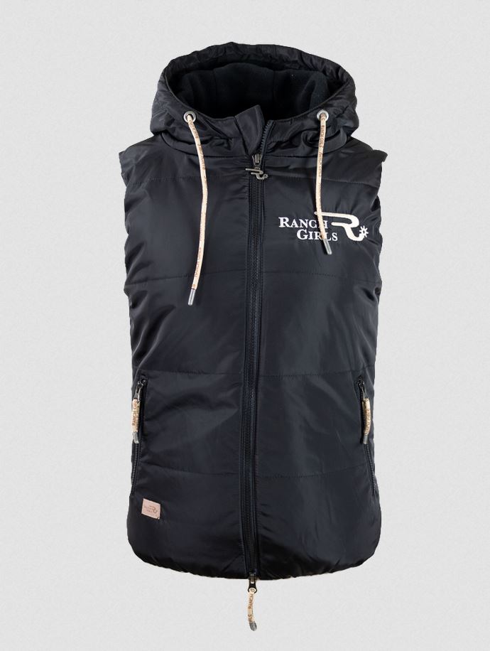Ranch Girls Hooded Vest Pam liivi, naisten kevyt, mukava ja toimiva liivi. Suojaa sinut kylmää, tuulta ja märkää vastaan. Liivissä on vetoketju, kaksi vetoketjullista taskua ja huppu. Pesu 30 asteessa, pesu nurinpäin käännettynä, älä käytä huuhteluainetta, ei kuivausrumpuun. Väri klassinen musta tai ranchtyyliin mainiosti sopiva karo sierra/oranssi/beige/vaalea ruudullinen.