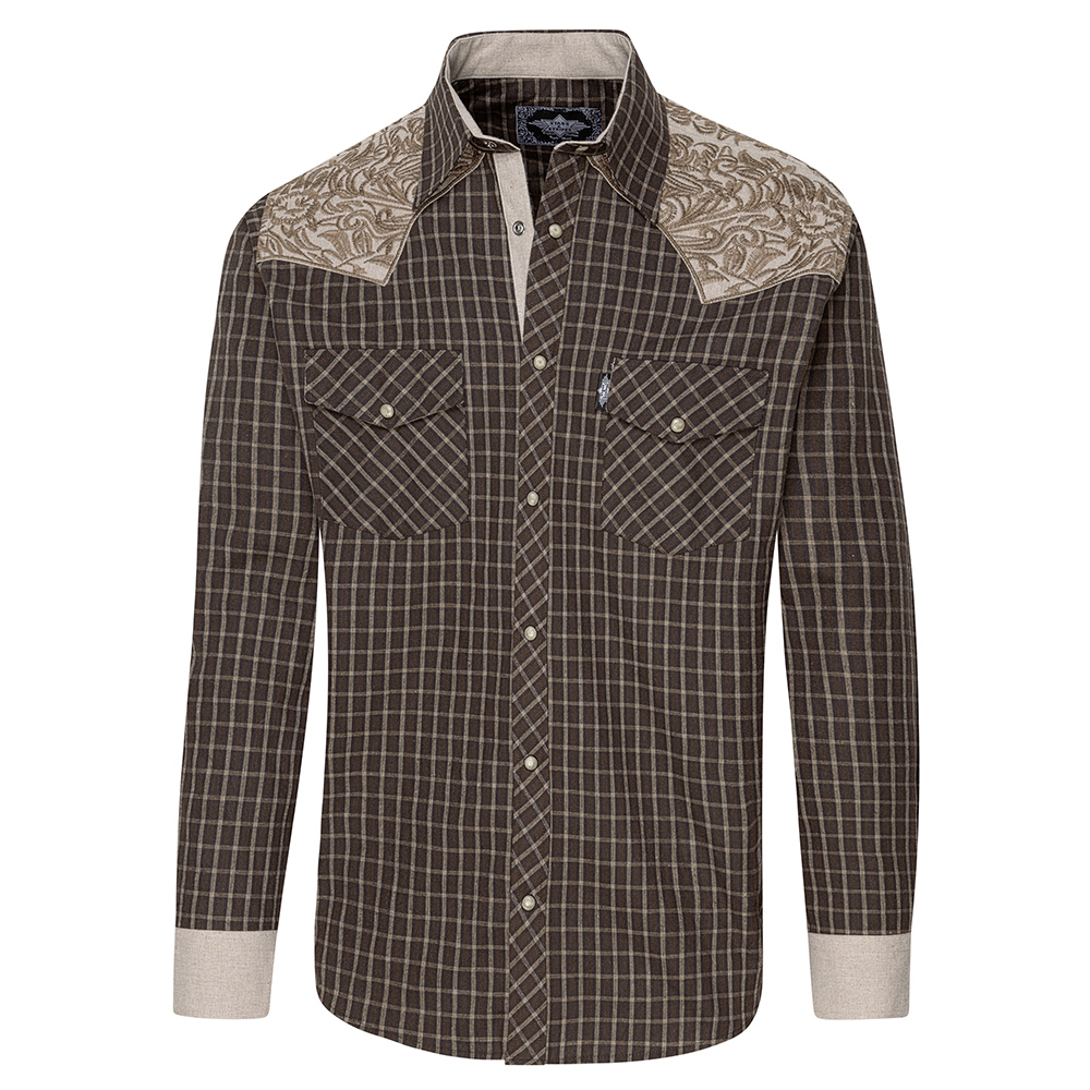 Plaid western shirt with embroidered western yoke and patch chest pockets. An incorporated fabric trim in the collar round out the design. Matching snaps on the button placket make the shirt a real highlight. Material: 80% cotton – 20% polyester.